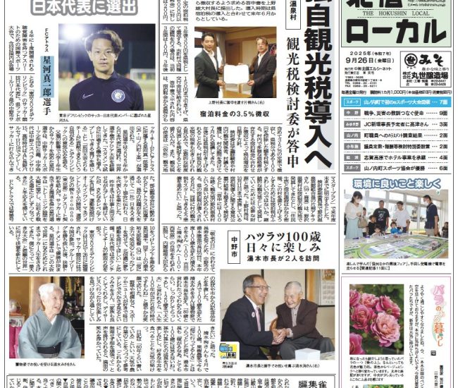 2025年9月26日 / 最終更新日時 : 2025年9月25日 admin 北信ローカル〜今週のインデックス〜 北信ローカル 本日発行 中野市、山ノ内町、小布施町、飯山市、木島平村、野沢温泉村、お近くのコンビニエンスストアでも販売しています。