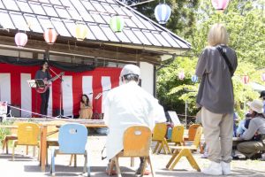 ベルカフェ店内の高座で怪談「真景累ヶ淵」を披露する笑家伯彩さん(左から3人目).jpg)