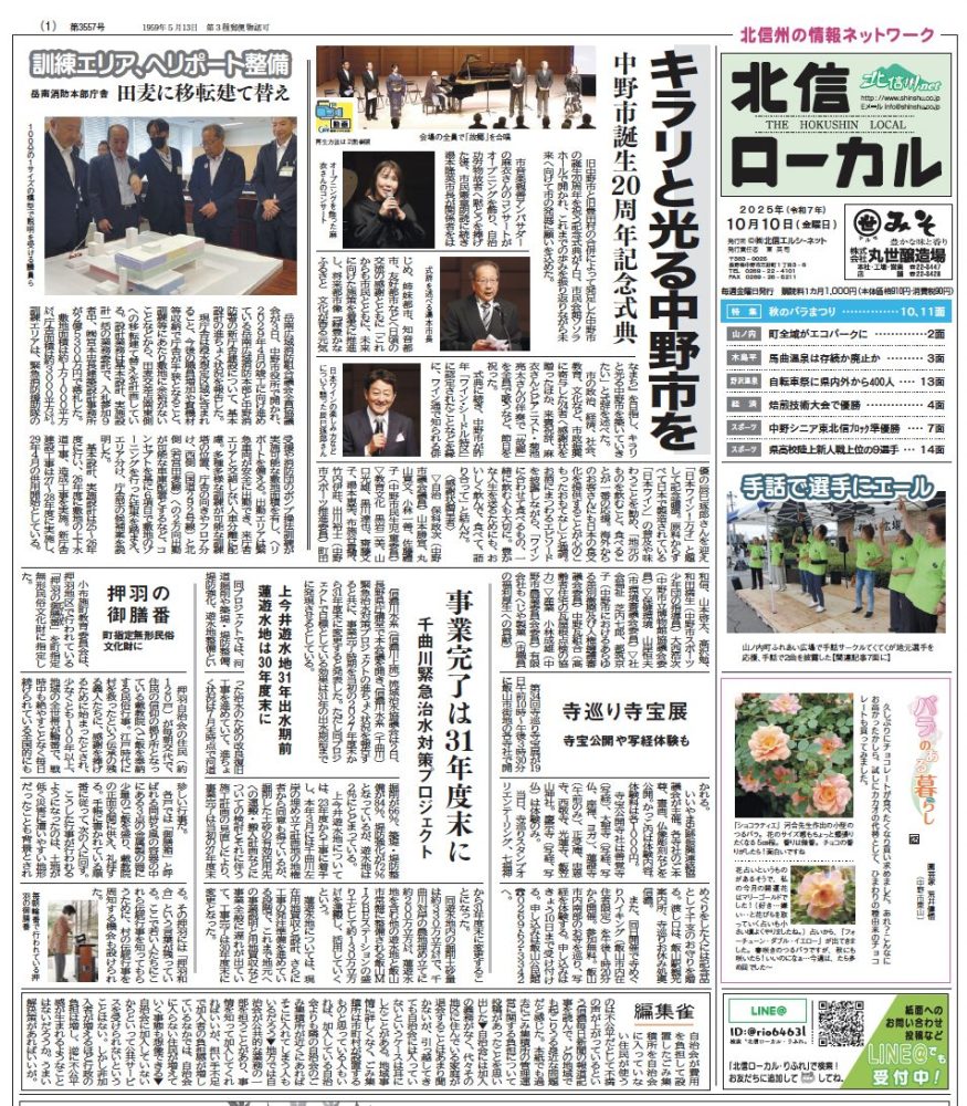2025年10月10日 / 最終更新日時 : 2025年10月9日 admin 北信ローカル〜今週のインデックス〜 北信ローカル 本日発行 中野市、山ノ内町、小布施町、飯山市、木島平村、野沢温泉村、お近くのコンビニエンスストアでも販売しています。 FacebookXBluesky