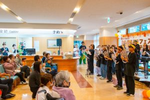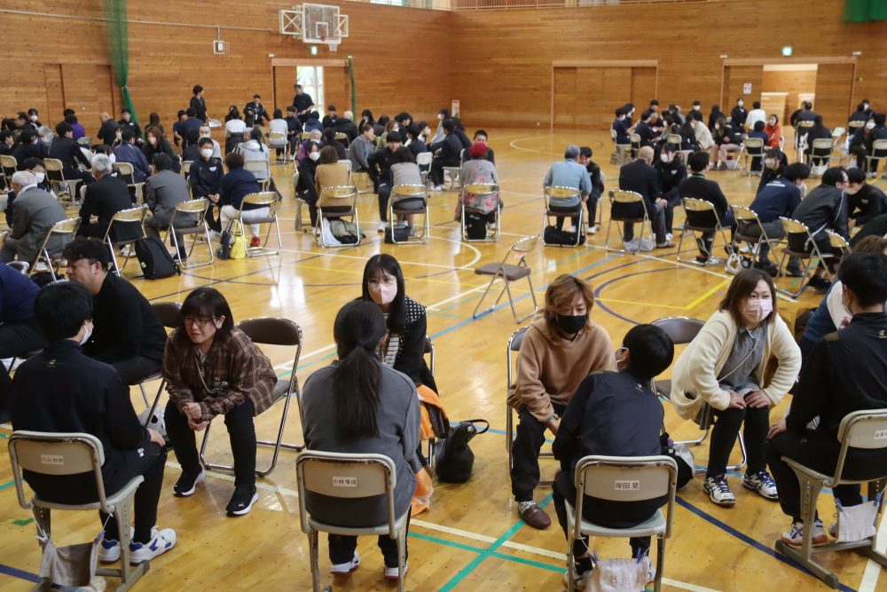 普段は関わりの少ない地域の若者と大人が世代間の理解を深める機会に―と、中野市社会福祉協議会は22日、高社中学校で「大人としゃべり場〜トークフォークダンス」を開催。同校2年生と地域の大人たち計約160人が1対1で向かい合い、テーマに沿って短いおしゃべりを楽しんだ。