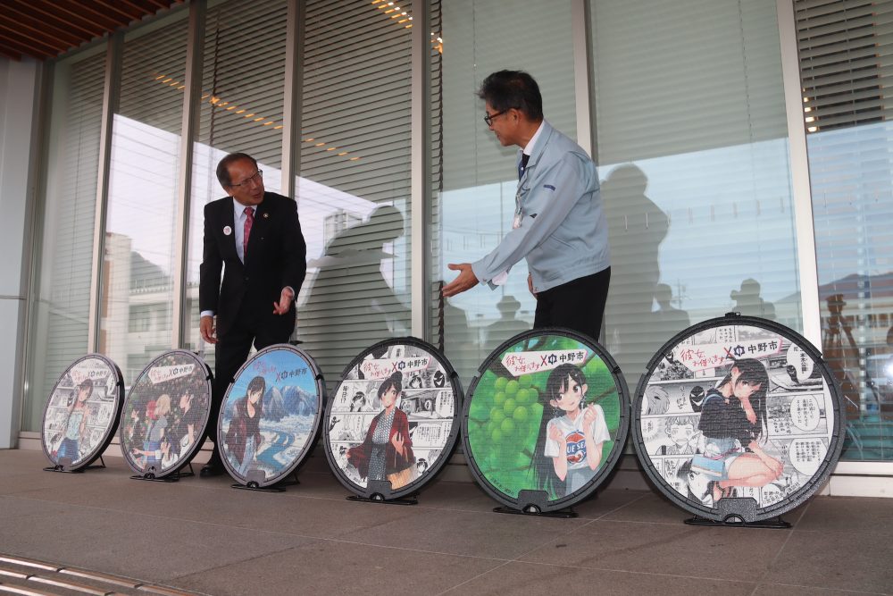 2025年11月8日 / 最終更新日時 : 2025年11月6日 admin 中野市 かのかりマンホール 中野市市民会館ソソラホールなどで9日に開催される「なかのかのかり祭」を前に、市は5日、「かのかり」をデザインしたオリジナルのマンホールのふた6種類を市役所前で披露。市内4カ所の歩道などに設置したほか、市役所で2種類を展示している。 FacebookXBluesky
