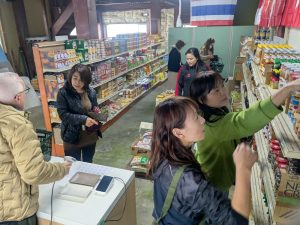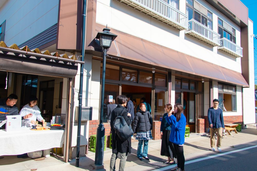 まちづくりや関係人口創出に取り組む(一社)小布施まちイノベーションHUBは8日、来春オープン予定の複合施設「往おうらい来」で交流イベント「まちあい〜食べる・話す・聞く・歩く〜」を開催した。町民から観光客など約100人が訪れた。