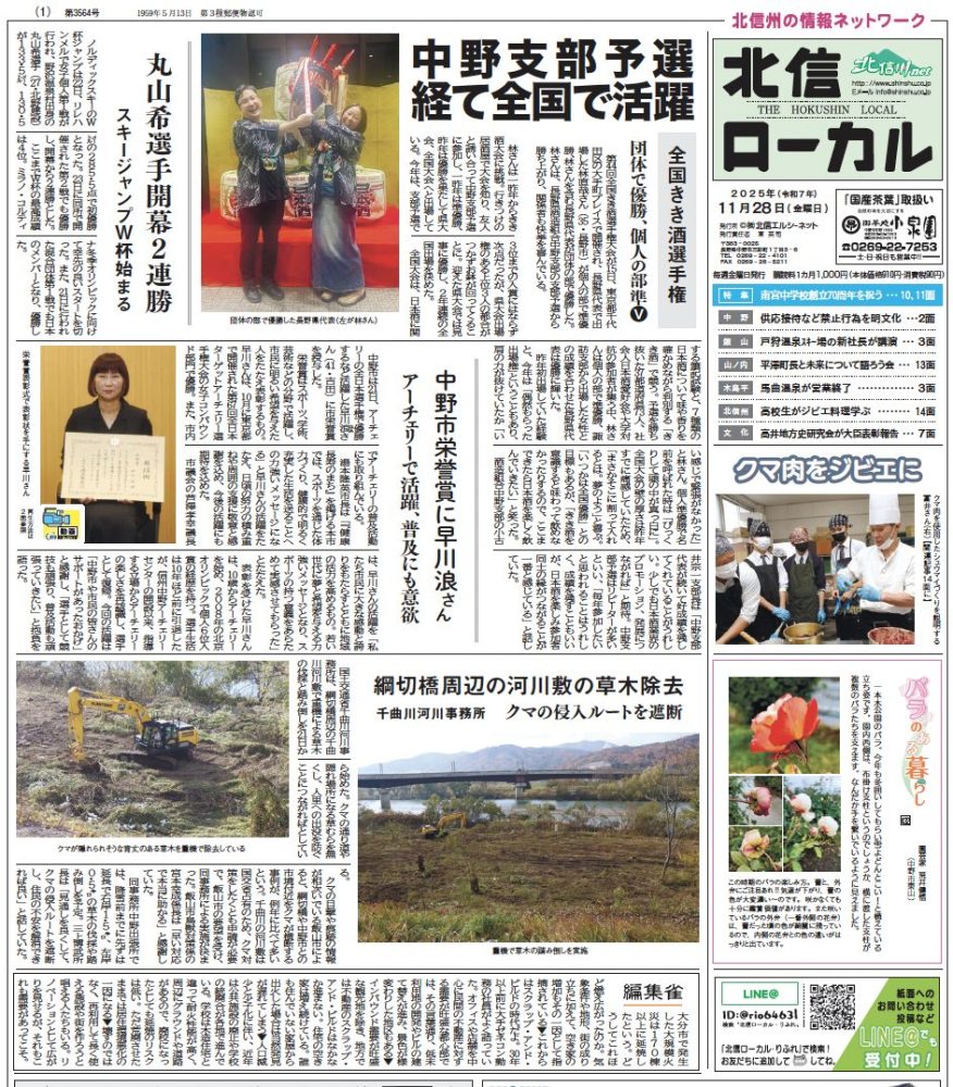 2025年11月28日 / 最終更新日時 : 2025年11月26日 admin 北信ローカル〜今週のインデックス〜 北信ローカル 本日発行 中野市、山ノ内町、小布施町、飯山市、木島平村、野沢温泉村、お近くのコンビニエンスストアでも販売しています。 FacebookXBluesky