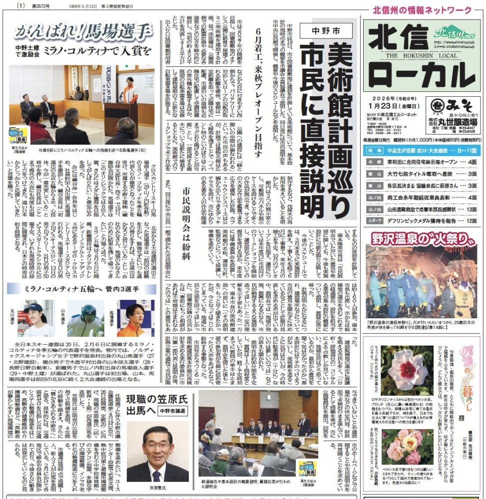 2026年1月23日 / 最終更新日時 : 2026年1月22日 admin 北信ローカル〜今週のインデックス〜 北信ローカル 本日発行 中野市、山ノ内町、小布施町、飯山市、木島平村、野沢温泉村、お近くのコンビニエンスストアでも販売しています。 FacebookXBluesky