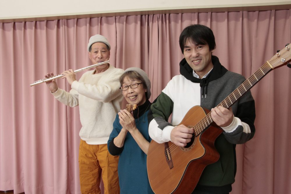 山ノ内町湯田中の大熊二三子さん、夫の信幸さんが、ギタリストの保科智幸さんと即席ユニットを結成。2月15日午後1時30分から沓野伝習館で開かれる沓野保健補導員会主催のコンサート出演を前に練習を重ねている。3人は当日、会場を訪れてくれた人たちをイメージして「和やかに、少しでも前向きな気持ちになってもらえたらうれしい」と話している。