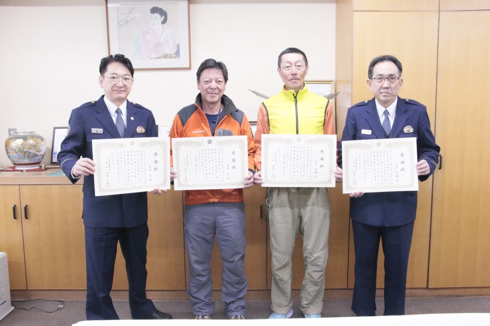 2026年3月19日 / 最終更新日時 : 2026年3月12日 admin 山ノ内町 バックカントリー遭難者を救助 中野警察署は10日、志賀高原で発生した山岳遭難救助に尽力した同地区山岳遭難防止対策協会の竹節晃救助隊長、高相智まこと副隊長、小泉茂樹奥志賀焼額山班長、春日原勇二同副班長の4人に署長感謝状を贈って功績をたたえた。 FacebookXBluesky