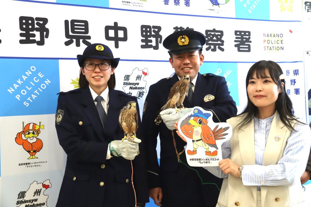 2026年3月18日 / 最終更新日時 : 2026年3月12日 admin 中野市 ホバリングで地域を見守ります 十三崖チョウゲンボウ応援団で保護しているチョウゲンボウの「ちょうすけ」が4日、中野警察署を訪問。同署のシンボルマスコットで同名の「ちょうすけ」や橋本和也署長らと初めて対面した。 FacebookXBluesky