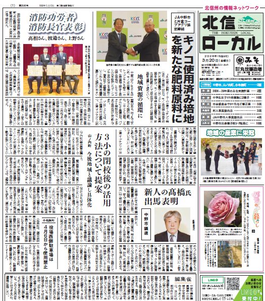 2026年3月20日 / 最終更新日時 : 2026年3月19日 admin 北信ローカル〜今週のインデックス〜 北信ローカル 本日発行 中野市、山ノ内町、小布施町、飯山市、木島平村、野沢温泉村、お近くのコンビニエンスストアでも販売しています。 FacebookXBluesky